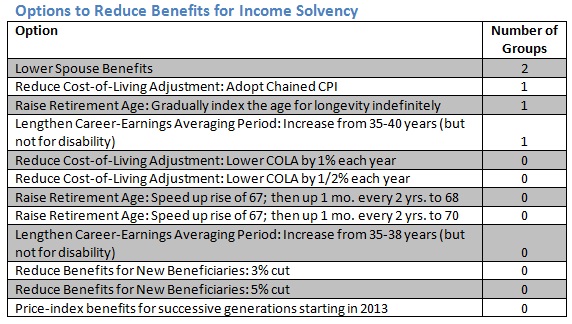Based on this exercise, the attendees at the 2012 Social Security Intern Academy decided on a plan to address Social Security’s solvency and adequacy as follows: