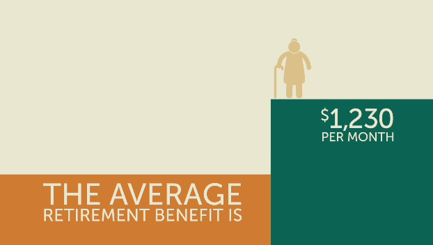 “The average retirement benefit is modest, $1,230 a month. Yet benefits are the main income for most seniors.”