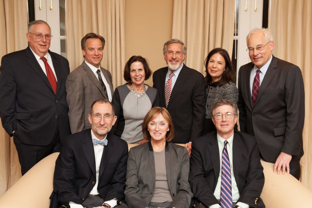 PHOTO: Former CMS/HCFA Administrators: (standing, L-R) Bruce Vladeck, Mark McClellan, MD, Gail Wilensky, Leonard Schaeffer, Nancy-Ann Min DeParle, Don Berwick, MD; (seated, L-R) Bill Roper, MD, Marilyn Tavenner, Tom Scully. (Photo made possible by Leonard Schaeffer).